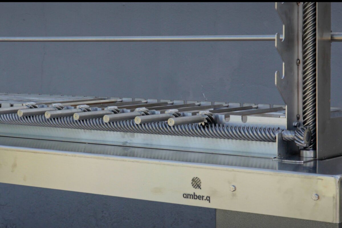 Η ψησταριά κάρβουνου amber.q A είναι το πρώτο και πιο πλήρες μοντέλο μας. Μια επαγγελματικού επιπέδου ψησταριά, φτιαγμένη για όσους παίρνουν το ψήσιμο στα σοβαρά, ακόμα κι αν ψήνουν στην αυλή του σπιτιού τους. Κατασκευασμένη 100% από ανοξείδωτο χάλυβα 304, ακόμα και στους ατέρμονες κοχλίες και στα γρανάζια. Στο εσωτερικό της διαθέτει πλευρική θερμομόνωση με θερμοκουβέρτα μεγάλης πυκνότητας, ενώ το δάπεδο της σκάφης είναι επενδυμένο με πυρότουβλα για ενισχυμένη θερμική ακτινοβολία και σταθερή απόδοση της θράκας.