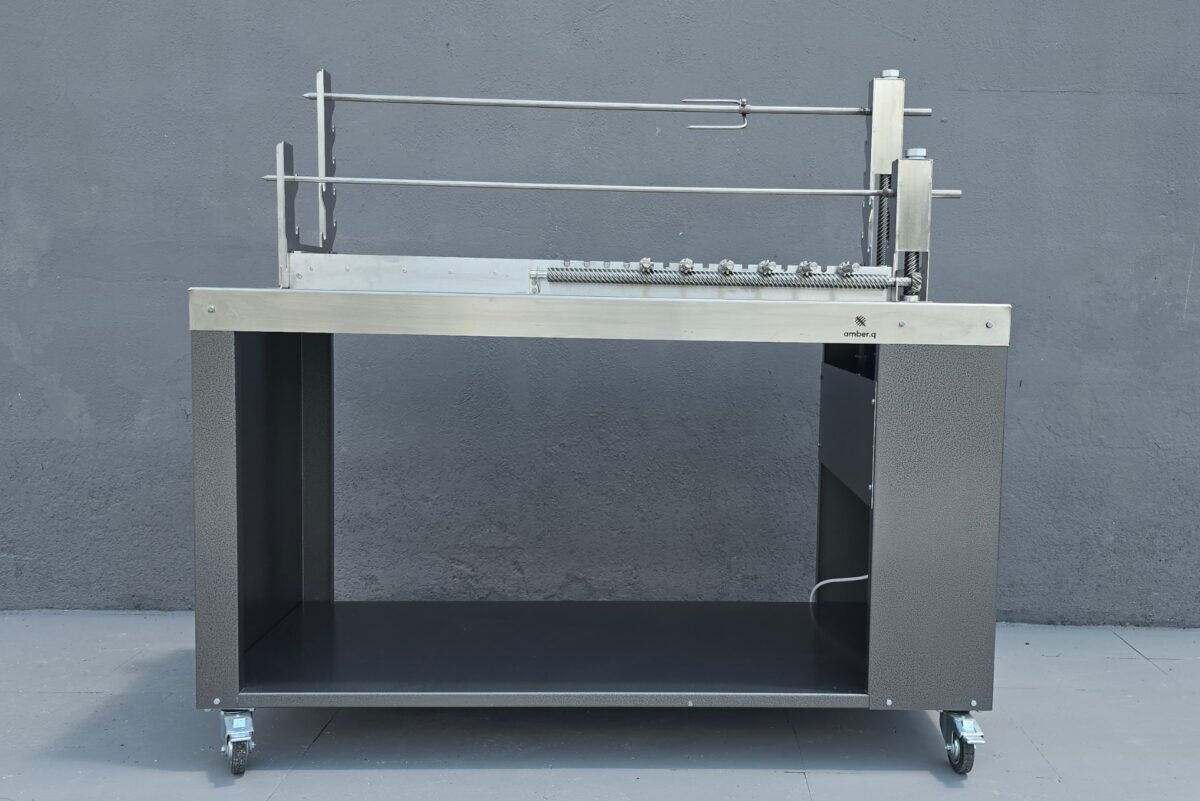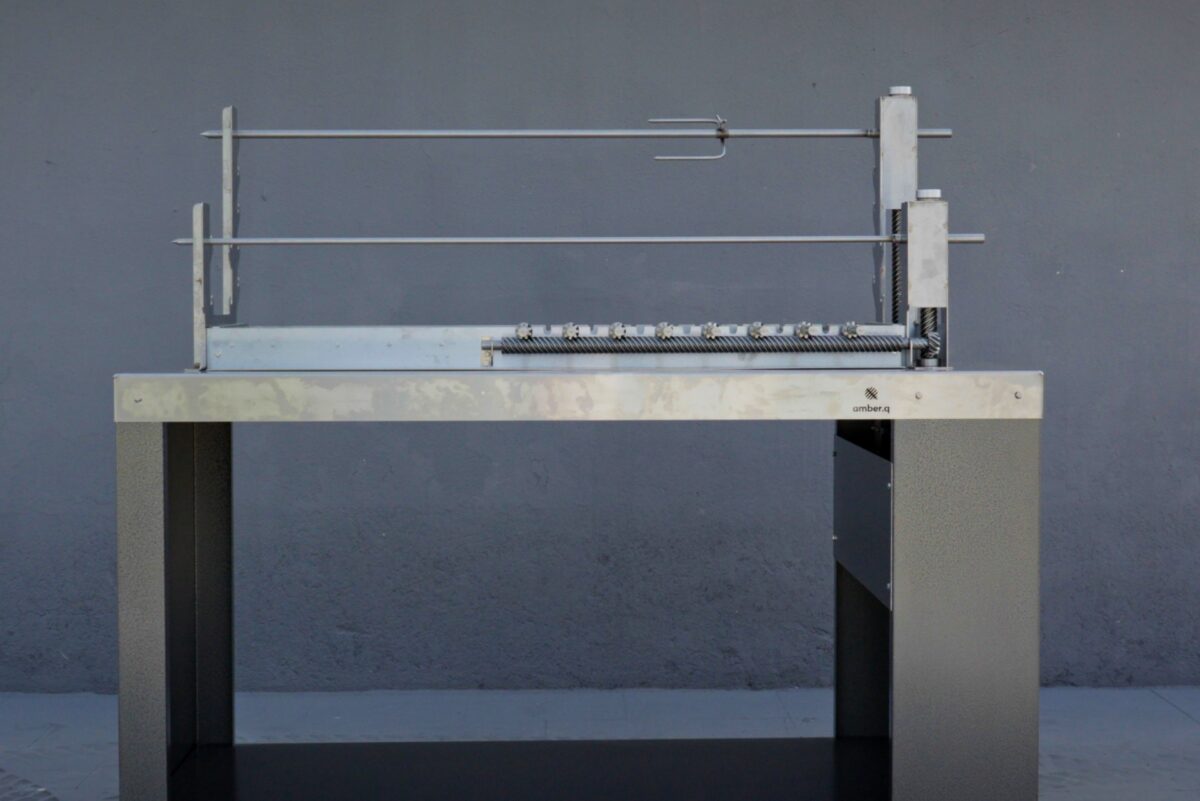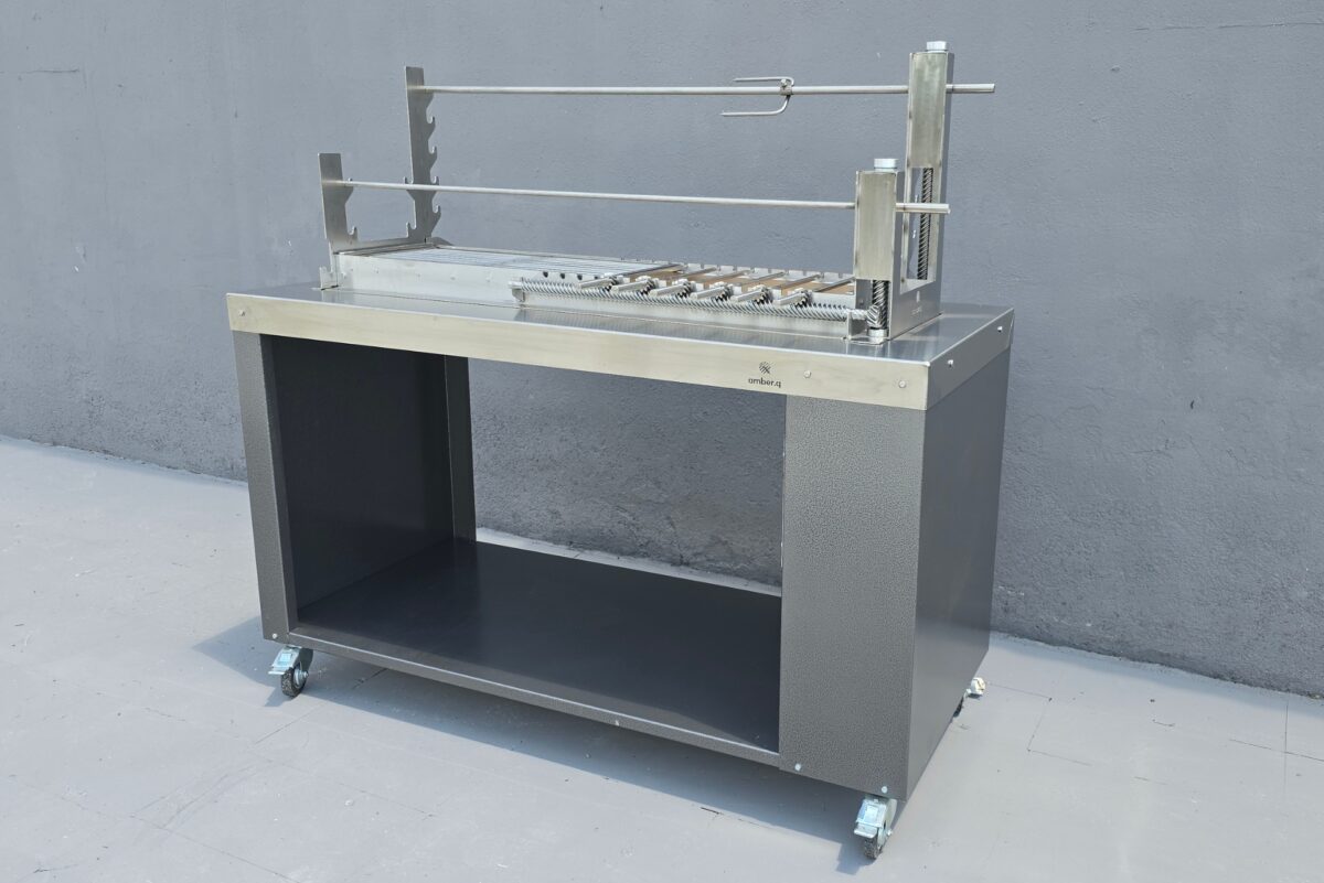 Η amber.q M μπορεί να τοποθετηθεί είτε σε δικό της μεταλλικό τραπέζι με ρόδες, ώστε να είναι φορητή και ευέλικτη, είτε να ενσωματωθεί σε οποιαδήποτε κατασκευή εξωτερικής κουζίνας ή κτιστό πάγκο, ή κτιστή ψησταριά, προσφέροντας πλήρη προσαρμογή στον χώρο σας. Απευθύνεται σε όσους ψάχνουν ψησταριά για αρνί, ψησταριά με σούβλες ή ψησταριά για κοντοσούβλια και σχάρα – και θέλουν ευελιξία και ποιότητα σε μία στιβαρή κατασκευή.