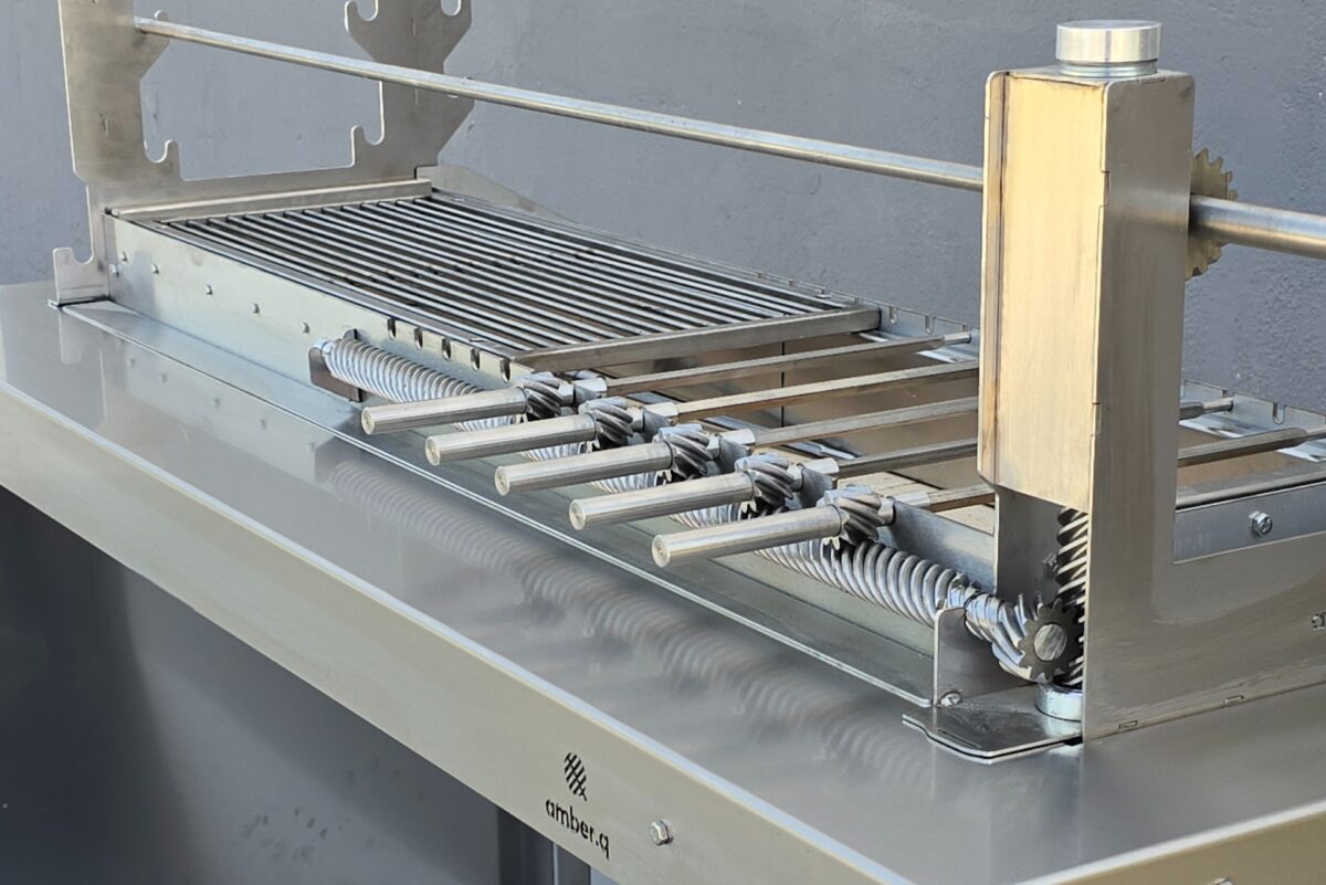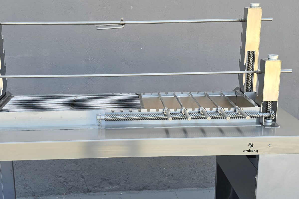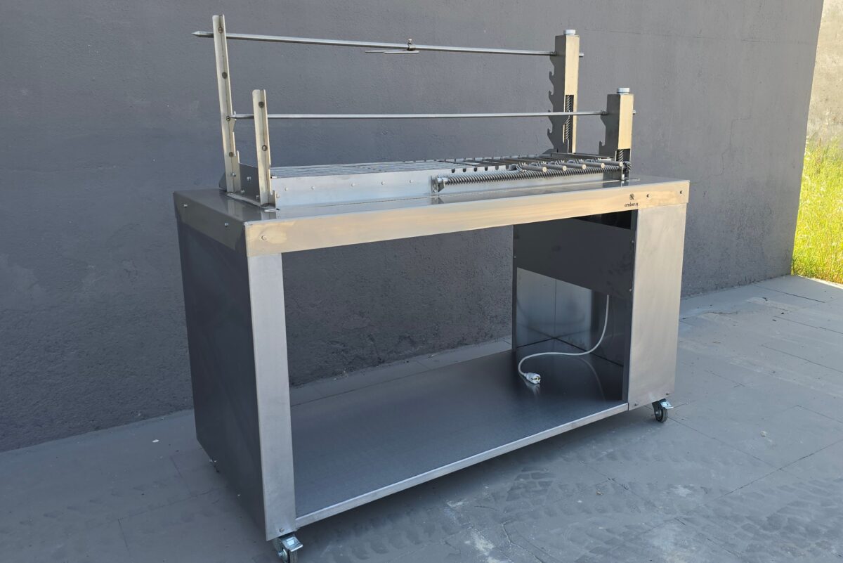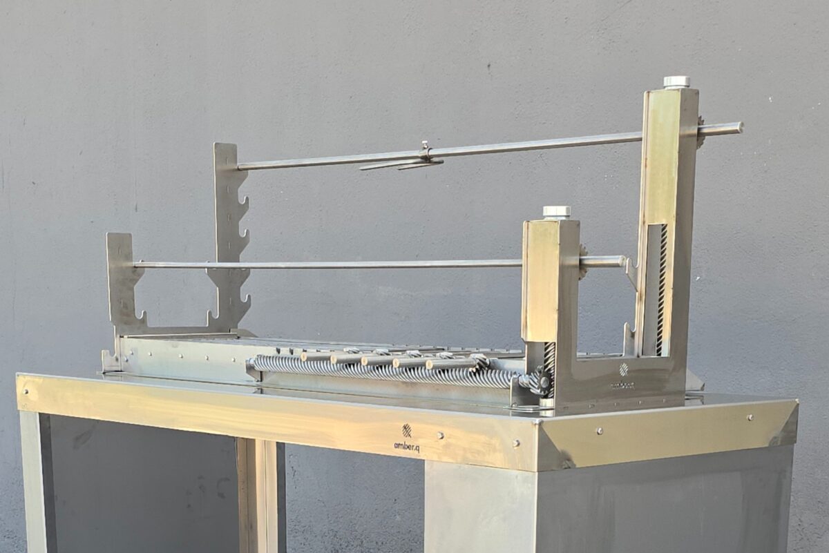 Η amber.q M μπορεί να τοποθετηθεί είτε σε δικό της μεταλλικό τραπέζι με ρόδες, ώστε να είναι φορητή και ευέλικτη, είτε να ενσωματωθεί σε οποιαδήποτε κατασκευή εξωτερικής κουζίνας ή κτιστό πάγκο, ή κτιστή ψησταριά, προσφέροντας πλήρη προσαρμογή στον χώρο σας. Απευθύνεται σε όσους ψάχνουν ψησταριά για αρνί, ψησταριά με σούβλες ή ψησταριά για κοντοσούβλια και σχάρα – και θέλουν ευελιξία και ποιότητα σε μία στιβαρή κατασκευή.