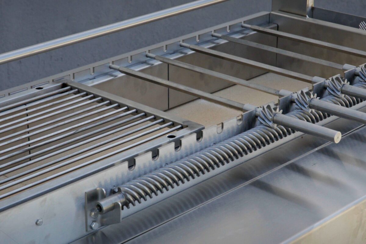 8 μικρές σούβλες inox (304), όλα τα μέρη βιδωτά και πλήρως ανοξείδωτα (και τα γρανάζια)